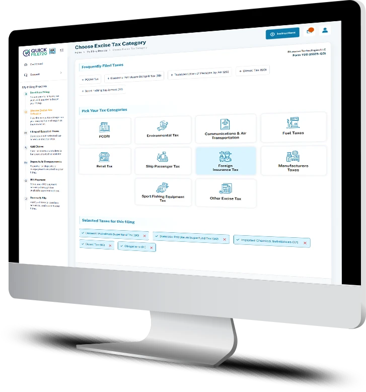 The platform includes validation checks aligned with IRS Form 720 requirements. These safeguards reduce the risk of rejection, penalties, or amended filings.
